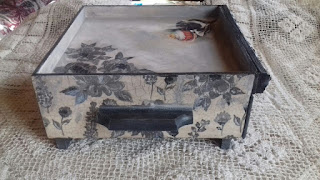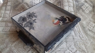 Несколько дней мучилась, как же это сделать? Пришлось трафарет вырезать, горжусь собой до сих пор)) Потом были всякие эксперименты с росписью, тонированием и в результате такая коробка. Хочу еще, по просьбе одной заказчицы, попробовать эпоксидкой залить, интересно будет через нее объем виден?